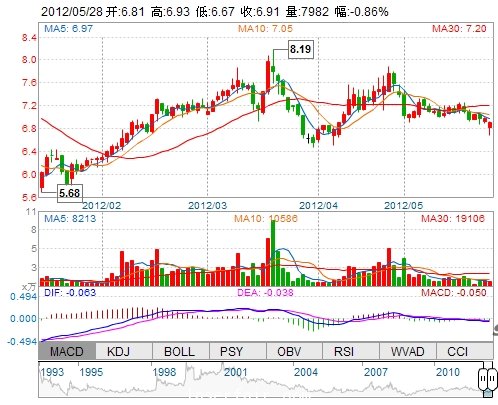 今 開: 6.81 成交量: 7981手 振 幅: 3.73% 最 高: 6.93 成交額: 542.50萬 換手率: 0.46% 最 低: 6.67 總市值: 12.00億 市凈率: 2.97 昨 收: 6.97 流通市值: ...