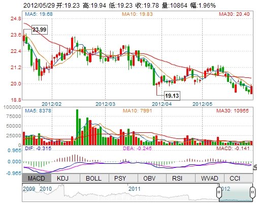 今 開: 19.23 成交量: 10864手 振 幅: 3.66% 最 高: 19.94 成交額: 2131.35萬 換手率: 0.91% 最 低: 19.23 總市值: 84.50億 市凈率: 5.96 昨 收: 19.40 流通...