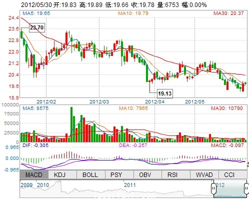 今 開: 19.83 成交量: 6752手 振 幅: 1.16% 最 高: 19.89 成交額: 1336.09萬 換手率: 0.56% 最 低: 19.66 總市值: 84.50億 市凈率: 5.96 昨 收: 19.78 流通市...