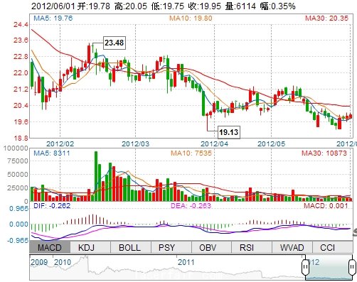 今 開: 19.78 成交量: 6113手 振 幅: 1.51% 最 高: 20.05 成交額: 1214.97萬 換手率: 0.51% 最 低: 19.75 總市值: 85.23億 市凈率: 6.01 昨 收: 19.88 流通市...