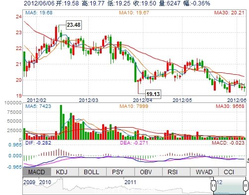 今 開: 19.58 成交量: 6247手 振 幅: 2.66% 最 高: 19.77 成交額: 1218.06萬 換手率: 0.52% 最 低: 19.25 總市值: 83.30億 市凈率: 5.87 昨 收: 19.57 流通市...