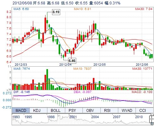 今 開: 6.68 成交量: 6054手 振 幅: 2.76% 最 高: 6.68 成交額: 399.44萬 換手率: 0.35% 最 低: 6.50 總市值: 11.38億 市凈率: 2.81 昨 收: 6.53 流通市值: ...