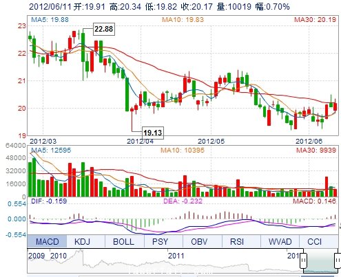 今 開: 19.91 成交量: 10018手 振 幅: 2.60% 最 高: 20.34 成交額: 2015.57萬 換手率: 0.84% 最 低: 19.82 總市值: 86.17億 市凈率: 6.08 昨 收: 20.03 流通...