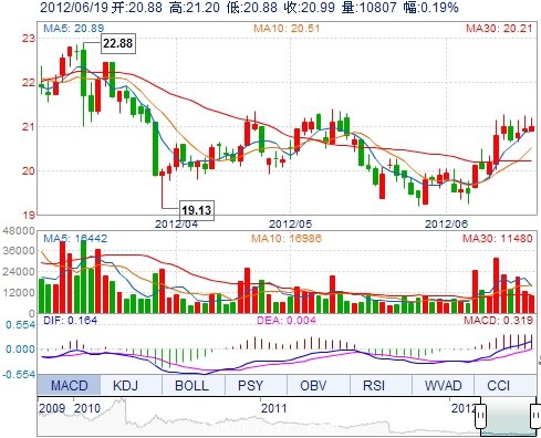 今 開: 20.88 成交量: 10807手 振 幅: 1.53% 最 高: 21.20 成交額: 2276.02萬 換手率: 0.90% 最 低: 20.88 總市值: 89.67億 市凈率: 6.32 昨 收: 20.95 流通...