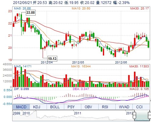 今 開: 20.53 成交量: 12572手 振 幅: 3.27% 最 高: 20.62 成交額: 2540.33萬 換手率: 1.05% 最 低: 19.95 總市值: 85.53億 市凈率: 6.03 昨 收: 20.51 流通...