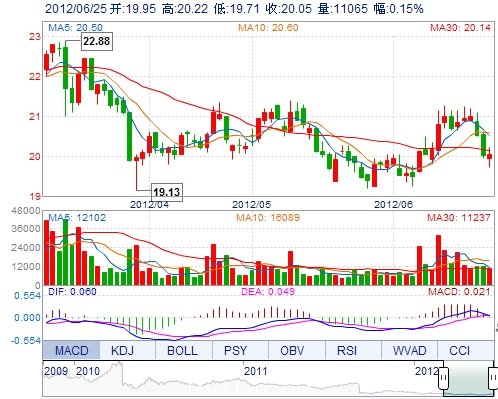 今 開: 19.95 成交量: 11065手 振 幅: 2.55% 最 高: 20.22 成交額: 2209.75萬(wàn) 換手率: 0.92% 最 低: 19.71 總市值: 85.65億 市凈率: 6.04 昨 收: 20.02 流通...