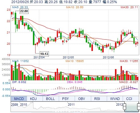 今 開: 20.03 成交量: 7977手 振 幅: 2.19% 最 高: 20.26 成交額: 1597.68萬 換手率: 0.67% 最 低: 19.82 總市值: 85.87億 市凈率: 6.05 昨 收: 20.05 流通市...