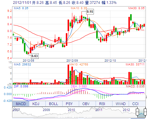 今 開: 8.26 成交量: 37274手 振 幅: 2.29% 最 高: 8.45 成交額: 3122.41萬 換手率: 1.92% 最 低: 8.26 總市值: 16.74億 市凈率: 3.37 昨 收: 8.29 流通市值...