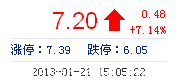 今開: 7.05 成交量: 82.28萬手 振幅: 6.25% 最高: 7.28 成交額: 5.85億元 換手率: 9.23% 最低: 6.86 總市值: 64.16億 市凈率: 2.46 昨收: 6.72 流通市值: 64...