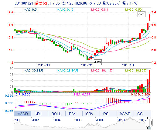 | 最 高: | 7.28 | 成交額: | 5.85億元 | 換手率: | 9.23% |
