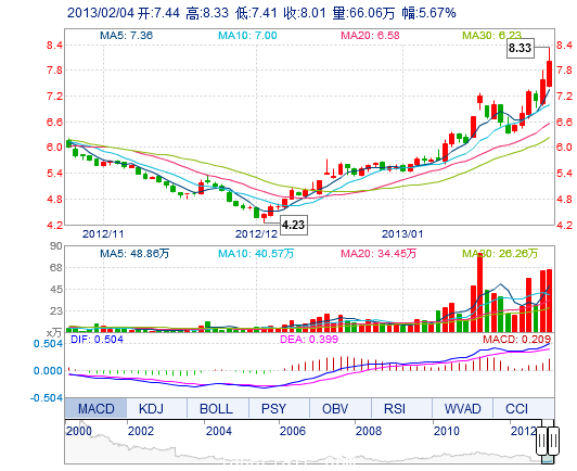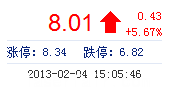 | 最 高: | 8.33 | 成交額: | 5.25億元 | 換手率: | 7.41% |