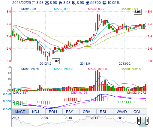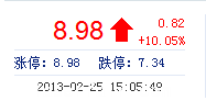 | 今 開: | 8.98 | 成交量: | 5.57萬手 | 振 幅: | 0.00% |