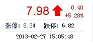 今開: 7.54 成交量: 36.61萬手 振幅: 7.26% 最高: 8.03 成交額: 2.86億元 換手率: 4.11% 最低: 7.48 總市值: 71.11億 市凈率: 2.72 昨收: 7.58 流通市值: 71...