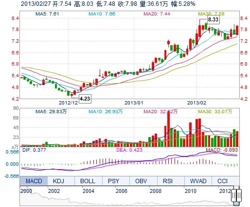 | 最 高: | 8.03 | 成交額: | 2.86億元 | 換手率: | 4.11% |