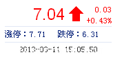 | 最 高: | 7.12 | 成交額: | 7363.29萬元 | 換手率: | 1.18% |