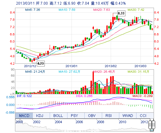 | 最 低: | 6.90 | 總市值: | 62.73億 | 市凈率: | 2.40 |