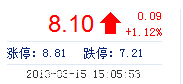 | 今 開: | 8.01 | 成交量: | 2.20萬手 | 振 幅: | 3.87% |