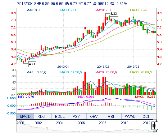 | 最 低: | 6.72 | 總市值: | 60.33億 | 市凈率: | 2.31 |