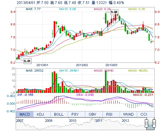 | 最 高: | 7.60 | 成交額: | 1003.58萬(wàn)元 | 換手率: | 0.69% |