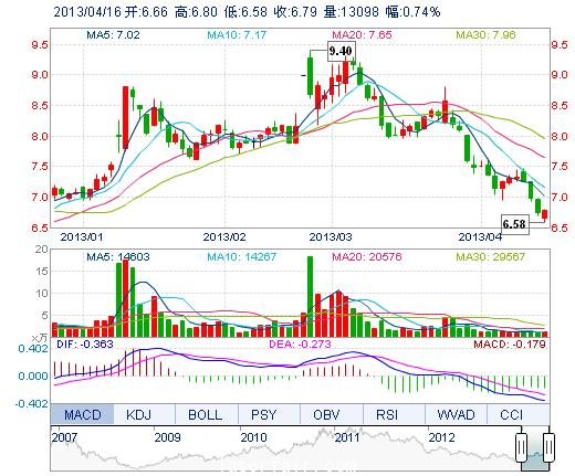 | 最 低: | 6.58 | 總市值: | 13.53億 | 市凈率: | 2.74 |