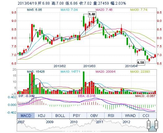 | 今 開: | 6.88 | 成交量: | 2.75萬手 | 振 幅: | 3.20% |