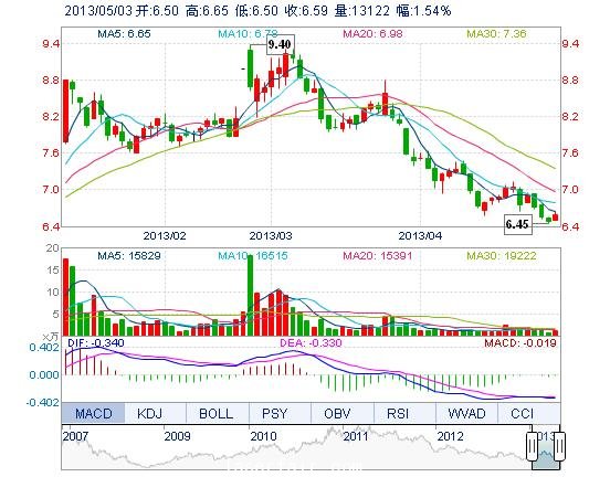 | 今 開: | 6.50 | 成交量: | 1.31萬手 | 振 幅: | 2.31% |