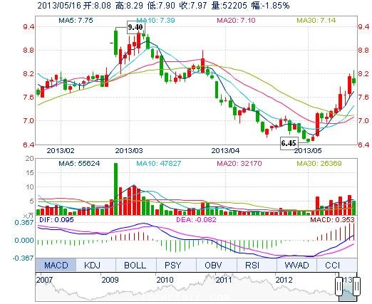 | 今 開: | 8.08 | 成交量: | 5.22萬手 | 振 幅: | 4.80% |