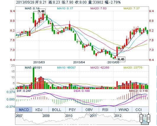 | 今 開: | 8.21 | 成交量: | 3.39萬手 | 振 幅: | 4.01% |