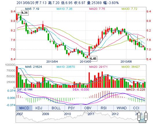 | 今 開: | 7.13 | 成交量: | 2.54萬手 | 振 幅: | 3.46% |