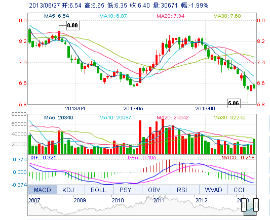 最  低: 6.35 總市值: 12.75億 市凈率: 2.64