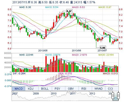 | 最 低: | 6.35 | 總市值: | 12.87億 | 市凈率: | 2.66 |