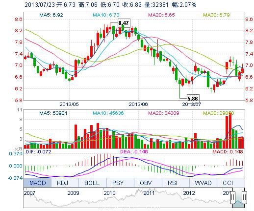 | 最 低: | 6.70 | 總市值: | 13.73億 | 市凈率: | 2.84 |