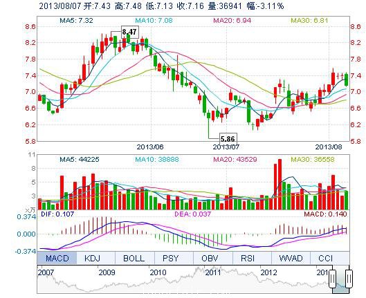 | 今 開: | 7.43 | 成交量: | 3.69萬手 | 振 幅: | 4.74% |
