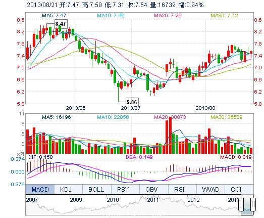 | 最 高: | 7.59 | 成交額: | 1253.46萬(wàn)元 | 換手率: | 0.86% |