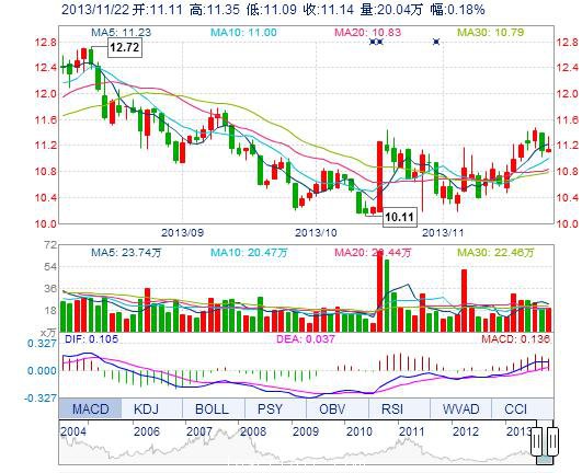 今開: 11.11 成交量: 20.04萬手 振幅: 2.34% 最高: 11.35 成交額: 2.25億元 換手率: 2.12% 最低: 11.09 總市值: 116.35億 市凈率: 3.33 昨收: 11.12 流通市值...