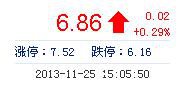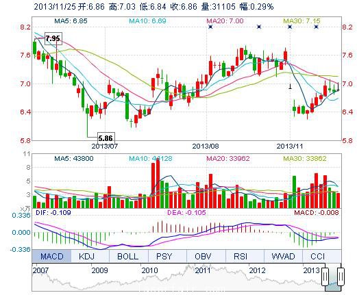 | 今 開: | 6.86 | 成交量: | 3.11萬手 | 振 幅: | 2.78% |