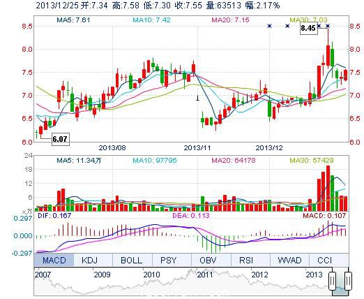 | 最 高: | 7.58 | 成交額: | 4736.40萬(wàn)元 | 換手率: | 3.19% |