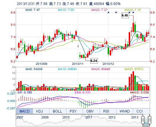 | 昨 收: | 7.61 | 流通市值: | 15.16億 | 市盈率TTM: | -- |