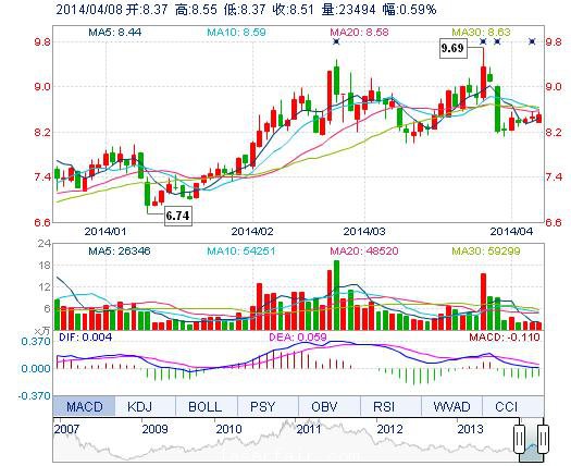 | 今 開: | 8.37 | 成交量: | 2.35萬手 | 振 幅: | 2.13% |