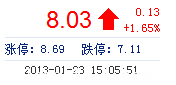 | 最 高: | 8.10 | 成交額: | 2247.48萬(wàn)元 | 換手率: | 1.45% |