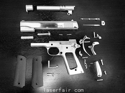 日前問(wèn)世的全球首支3D打印金屬槍?zhuān)湍0鍨榻?jīng)典的M1911式手槍?zhuān)煽偛课挥诘弥輮W斯汀的3D打印公司“固體概念”(Solid Concepts)團(tuán)隊(duì)設(shè)計(jì)并制造。團(tuán)隊(duì)成員根據(jù)網(wǎng)上的1911藍(lán)圖3D建模后用DMLS(直接金屬激光燒結(jié))技術(shù)加熱金屬粉末使其凝固成型,DMLS技術(shù)已超過(guò)M1911槍支對(duì)零件的精度要求,再經(jīng)過(guò)各種打磨以及調(diào)整槍膛等工藝,最后予以組裝。其有超過(guò)30個(gè)3D打印原件,包括不銹鋼和一些鎳鎘鐵合金材料,而彈簧和彈匣則為外購(gòu),發(fā)射仍需匹配實(shí)彈。