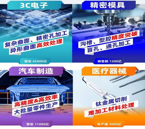 4大應用聚焦,震撼華南!展會聚焦行業(yè)精密零件加工,重點錨定3C電子、精密模具、汽車零部件、醫(yī)療器械等行業(yè)零件加工場景,致力于助力機加工朋友突破高精、高效等加工困局。